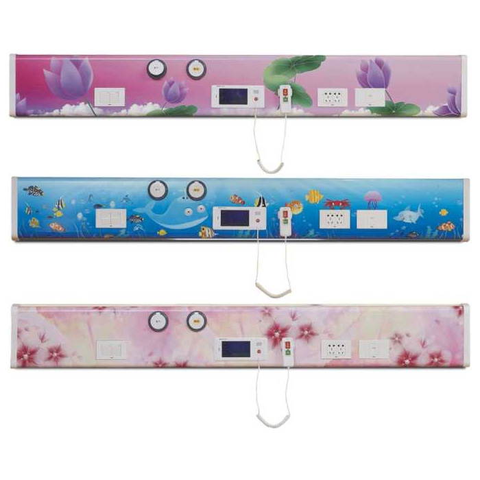 適用 兒科病房、產科病房等I尺寸Size高220mm 厚60mm 壁厚 1.5mmI 材質 Texture優(yōu)質鋁合金| 表面 Surface靜電噴塑I 特點 Characteristic?四腔結構,氣電分離;?上下小圓角組合,可選不同顏色 組合,美觀大方;?每床標配護眼LED閱讀燈、氧氣 負壓終端、開關各1個,十孔插座 2個;?可選配空氣終端、
